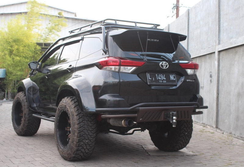 "Supaya penampilan All New Rush nampak gagah dengan kaki gajah," kekeh lajang yang tinggal di bilangan Jalan Cipunegara Surabaya tersebut. Ada beberapa ubahan yang dilakukan Reinaldi bersama Icon Auto Works, bengkel yang dipercaya menggarapnya, baik dari sisi eksterior hingga undercarriage dan finishingnya.