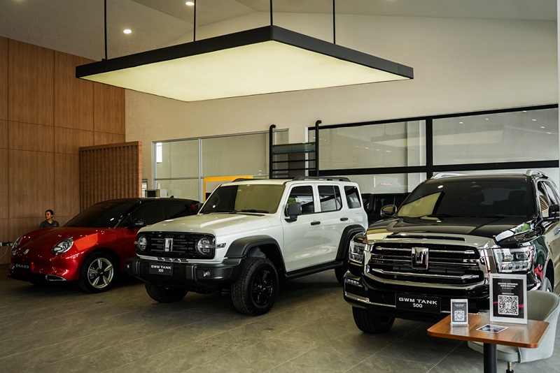 - Showroom seluas ±273,8 meter persegi, yang dapat menampilkan berbagai model kendaraan GWM dari lini Tank, Haval, dan ORA.