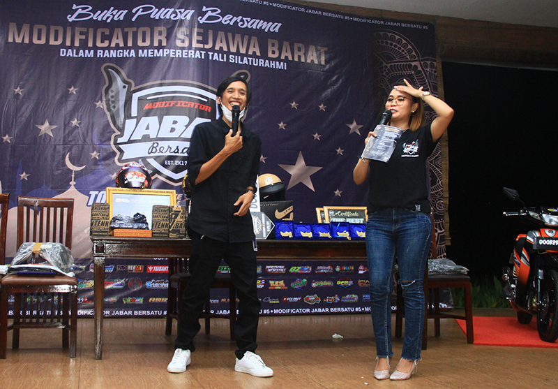 Dibuka pada pukul 15.00 WIB, beragam rundown acara dipersiapkan matang oleh tim official Buka Puasa Bersama MJB #5 – 2021. Dikawal asyik, enerjik and kocak pecah oleh duo host spesial, miss Ismy Cute feat Dunz ‘Dio’ DRC, ajang fun game digeber seru sembari menunggu proses registrasi peserta acara, tentunya untuk memperebutkan puluhan doorprise part variasi hasil donasi bareng speed shop dan gerai variasi se-Jabar raya member MJB.