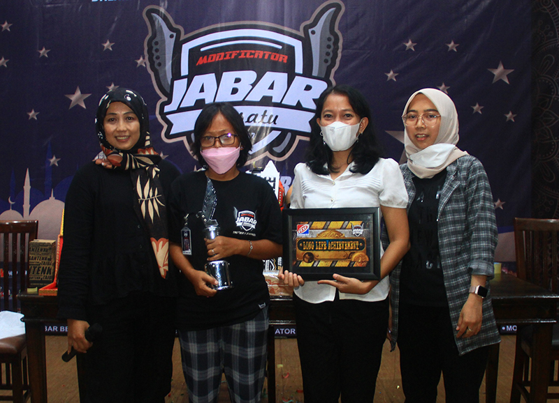OTOTREND AWARD - LONG LIFE ACHIEVEMENT MJB. Diserahkan Oleh Yuni Monster 5% & Teteh Entry 'Dio' DRC Untuk Bunda MJB Mba' Panca Indirani 'Podo Penak'e Paint' & Lady Legend Modifikator Jabar Teteh Liliana 'Ard's Custom'.