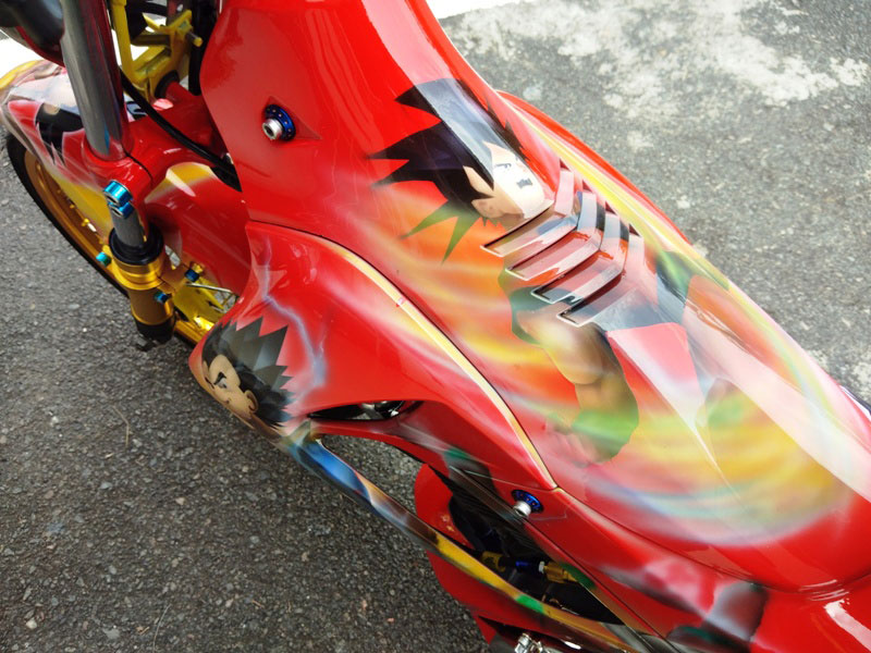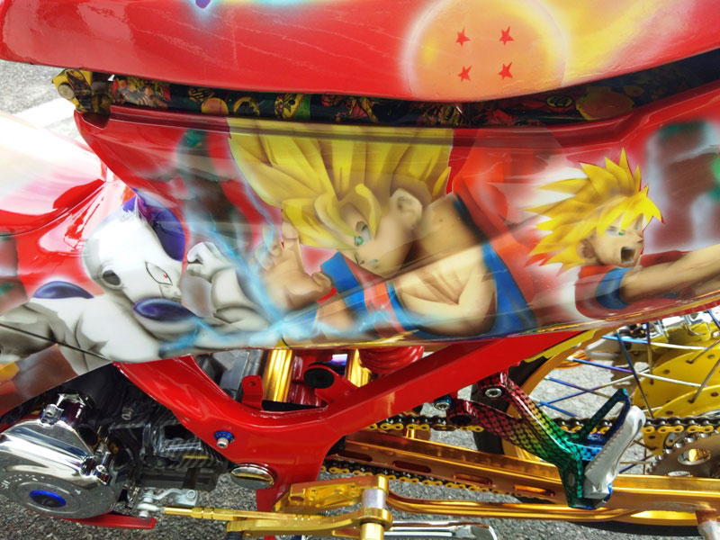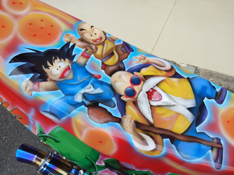 Sesuai tema Dragon Balls, banyak karakter yang ditonjolkan. Anime manga karya Akira Toriyama yang kali pertama populer tahun 1984 ini digambarkan dalam banyak sosok, mulai dari keluarga SonGoku dan Chichi, keluarga Vegeta dan Bulma, dan beberapa tokoh lain. Dan untuk memaksimalkan tema, semua part body juga ditimpa termasuk jok custom. Kali ini, giliran tiga tokoh protagonis yang ditampilkan, yakni Goku, Krillin dan master Roshi, minus rumah Kamesennin-nya.