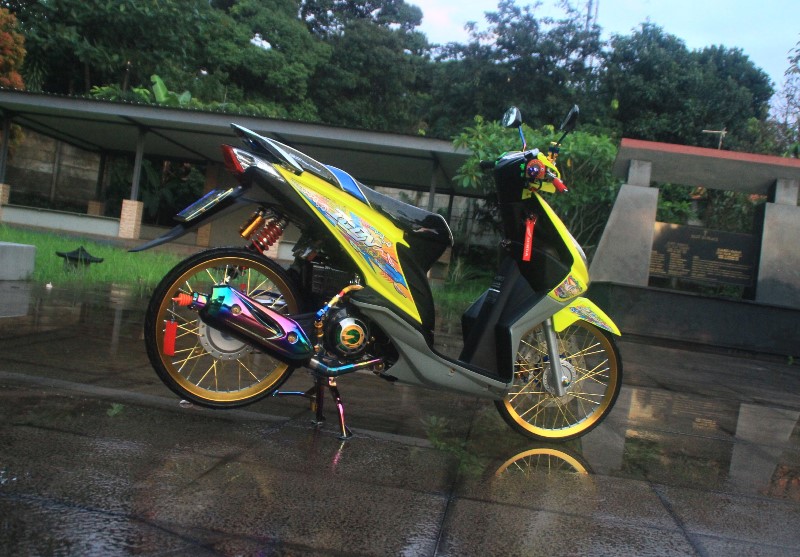 "Punya toko, wajib ada maskot modifnya. Buat pajangan modifikasi, siapa tahu juga jadi inspirasi pelanggan. Untuk itu Honda Beat ini menjadi pilihanku," ungkap Aming. Pengerjaan modifikasi yang memakan waktu sekitar dua bulan ini dikerjakan in-house, dengan menggandeng bengkel Vanz Modified sebagai eksekutornya.