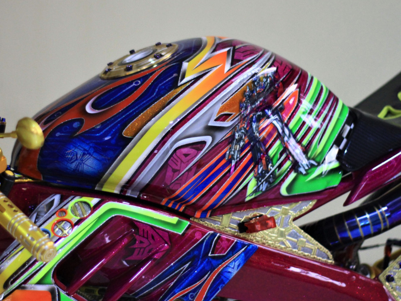 Selain perubahan pada sektor kaki-kaki, tampilan bergaya street racing pro pun semakin beberapa sektor bodi mengalami pemotongan, coak bulat dihiasi lempengan plat berbentuk grafir. Sisi belakang pun diupdate, mengaplikasi milik Yamaha TSM 150 lengkap stoplampnya. Sebagai finishing, tumpahan cat Sikkens bermotif grafis lengkap dengan corak Optimus prime. Untuk clearnya memainkan bahan Sikkens agar lebih halus.