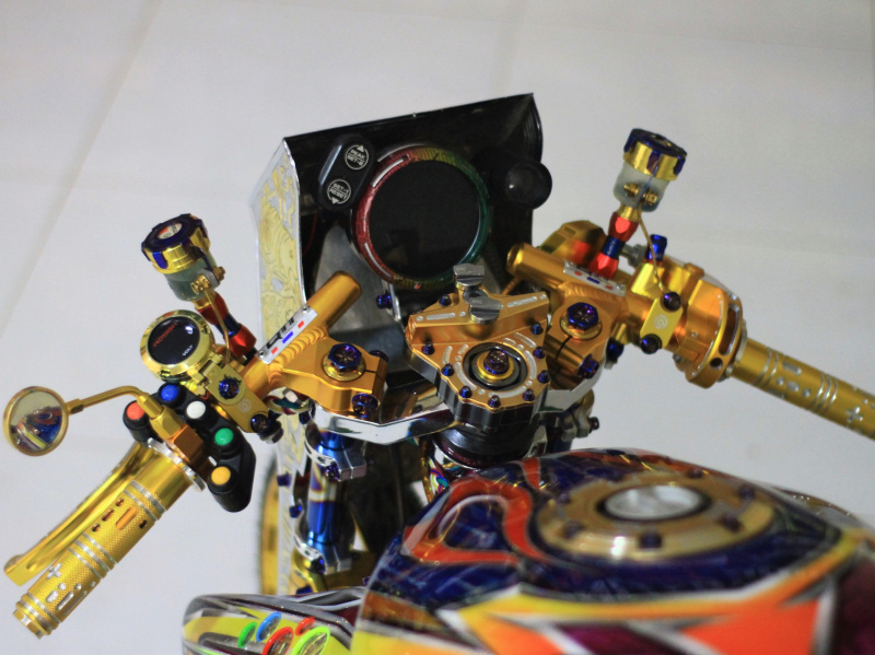 Tambahan aseso pelengkap juga disertakan. Sektor stangnya lebih padat oleh QTT bermaster rem Brembo gold dihiasi spion posh. Sebagai penunjang tampilan, indicator spidometer dan stabilizer dari Ohlins RTC yang kini lebih menawan. Pastinya, overall looking benar-benar sangar, dan bisa mewakili ciri khas masterpiece garapan N2C Garage.