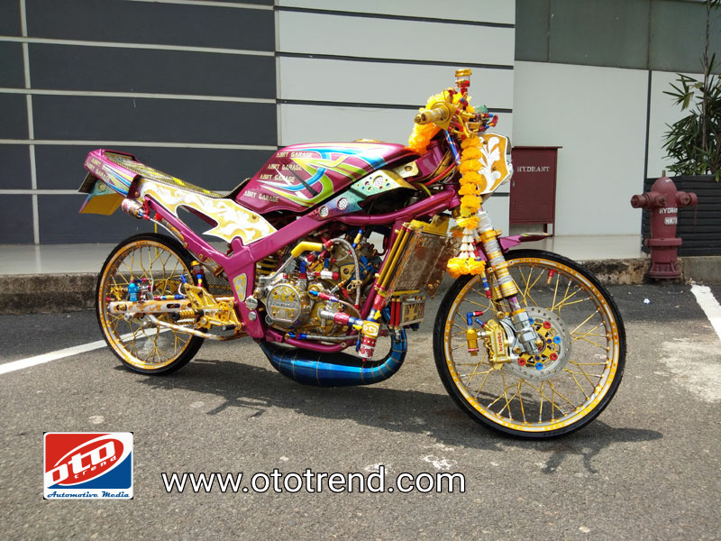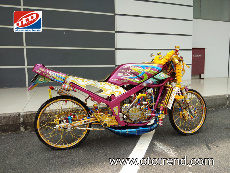SOK DEPAN / BELAKANG : Fast bike custom - YSS Repaint, CAKRAM DEPAN : Fast bike, MASTER & KALIPER : KTC/Brembo, TROMOL : Custom, SWINGARM : BPro, PELEK : DFT V-line 140-17, BAN : Duro 50/65, ENGINE : Korek harian, KOPLING : Hidrolis, OIL COOLER : FU custom, KNALPOT : AMF Muffler, LAMPU : Custom projie, PIJAKAN KAKI : MotoGP, STANG : Fastbike, STABILIZER : RGR, TACHO & GAUGE : Koso replica, GAS SPONTAN : Willwood, EPOXY - CAT & CLEAR : Pentagloss - Auto, BENGKEL KROM : G-chromed, MODIFIKATOR : ABRT Garage - Legenda Point Batam CP : 0877-9119-2488.