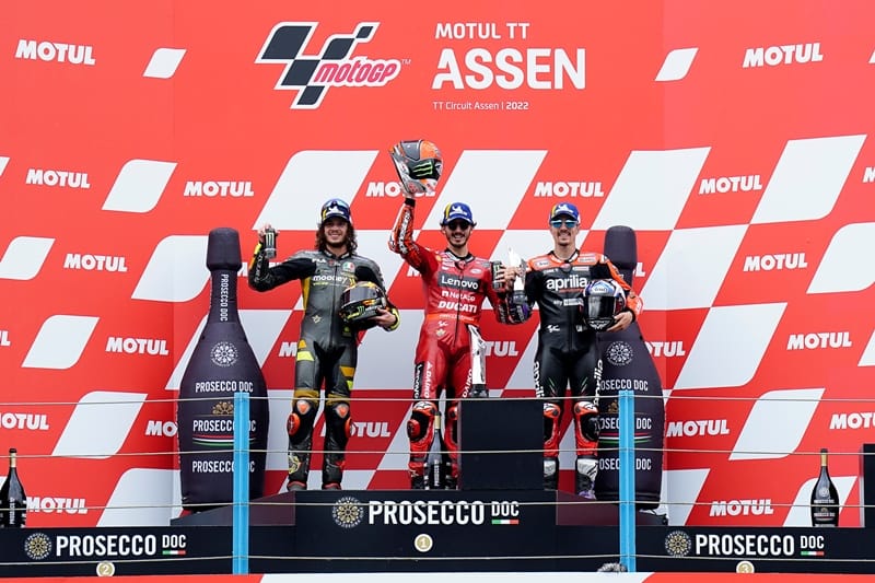 Selain Bagnaia yang mampu memaksimalkan 25 poin untuk mengejar top klasemen, Marco Bezzechi juga tampil apik dengan finish runner up, sekaligus membukukan catatan podium pertama selama karirnya di kelas premium.
